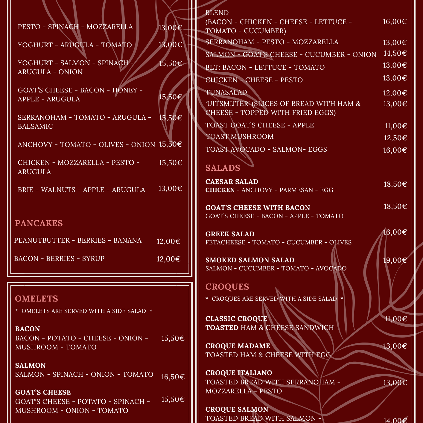 Lore, together with her team of enthusiastic colleagues, gladly welcomes you to our bar. Customer is as always King and we do our utmost best to make sure your stay is as pleasant as possible. We look forward to welcoming you!